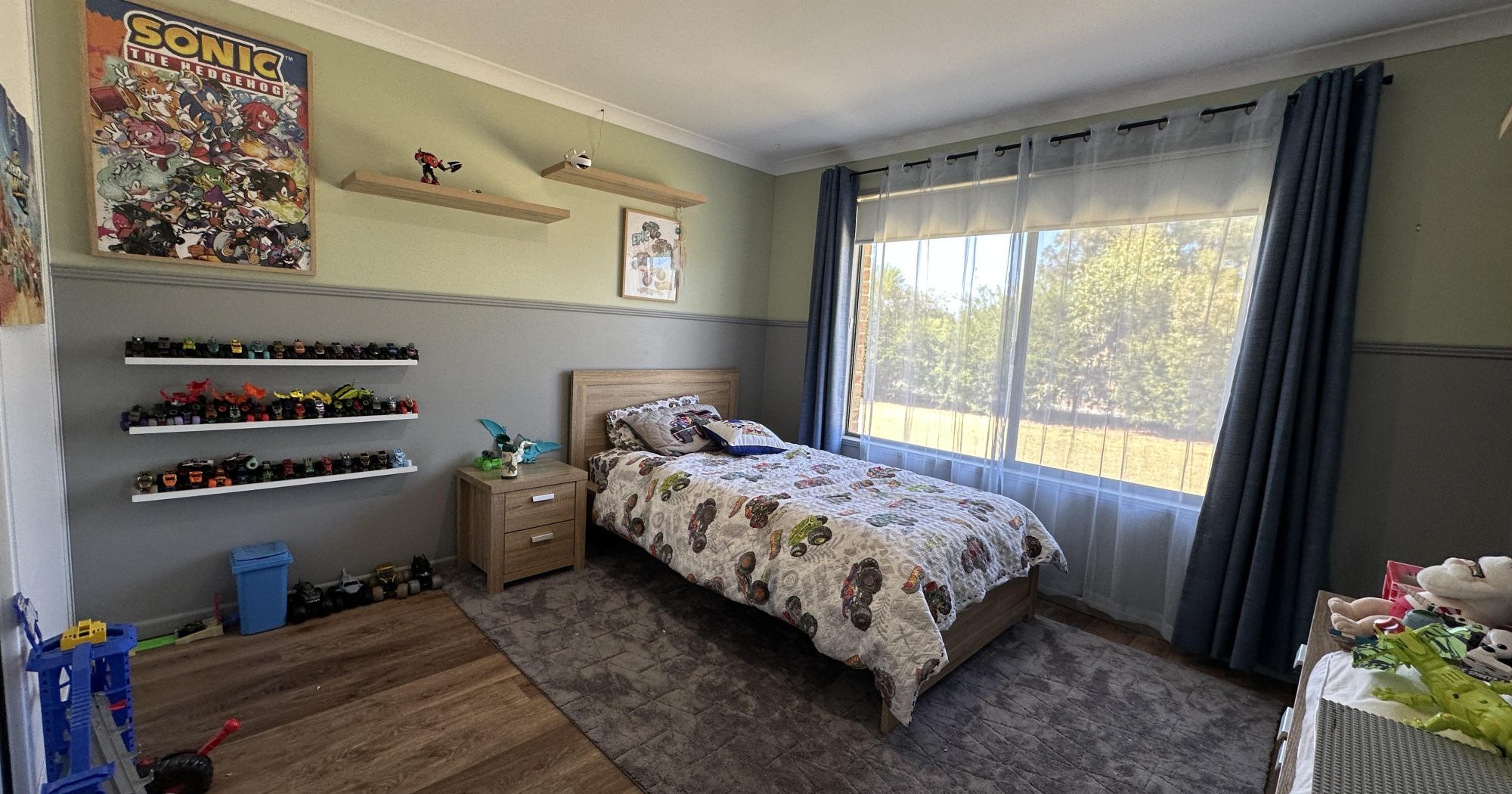 •Large master bedroom featuring not 1 but 2 robes, an open ensuite, separate toilet and ceiling fan